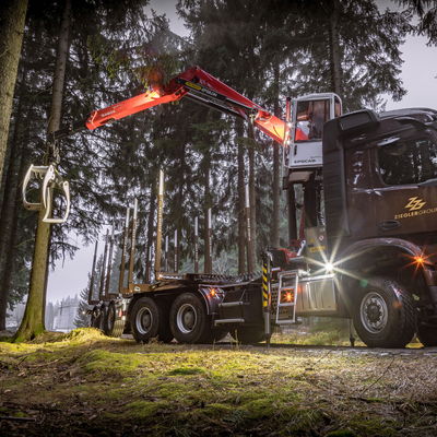 „Im Wald beladen, umsatteln, losfahren. Seit wir einen DOLL® LOGO 14X in unserem Fuhrpark haben, sparen wir uns den Umsattelvorgang am Waldrand. Die niedrige Ladehöhe und Gewichtsverteilung des Fahrzeugs ist top. Und super fahren lässt er sich im Wald und auf der Straße sowieso."